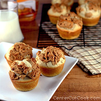 Right before serving, drizzle honey over the top of each muffin. Serve warm, and with a fork because these honey coated muffins aren’t suited for your fingers. :)