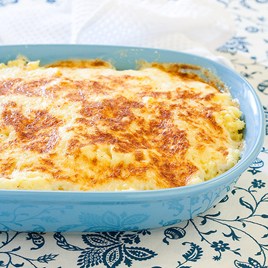3. BROIL With rubber spatula, fold 1 1/4 cups cheese into remaining cream. Spread over potatoes and sprinkle with remaining cheese. Broil until top is golden, 2 to 3 minutes. Let rest about 4 minutes. Serve.