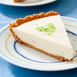2. MAKE FILLING Combine 3 table- spoons lime juice and gelatin in small bowl and let sit until gelatin softens, about 5 minutes. Microwave until mixture is bubbling around edges and gelatin dissolves, about 30 seconds. Wipe out food processor and process condensed milk, yogurt, and remain- ing cream cheese until smooth, about 1 minute. With machine running, pour in gelatin mixture, remaining lime juice, zest, and vanilla and process until thoroughly combined.