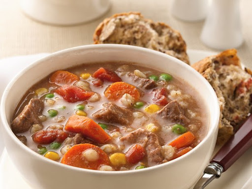 (Saturated Fat 4g,Trans Fat 0g),Cholesterol 50mg;Sodium 930mg;Total Carbohydrate 25g (Dietary Fiber 5g,Sugars 5g),Protein 21g;Percent Daily Value*:Vitamin A 90 %;Vitamin C 8 %;Calcium 6 %;Iron 20 %;Exchanges:1 Starch;0 Fruit;1/2 Other Carbohydrate;0 Skim Milk;0 Low-Fat Milk; 0 Milk;1 Vegetable;0 Very Lean Meat;0 Lean Meat;0 High-Fat Meat;0 Fat;Carbohydrate Choices:1 1/2;*Percent Daily Values are based on a 2,000 calorie diet.