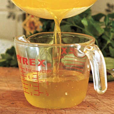 to make 3/4 a cup of ghee (clarified butter) place 2 sticks of sweet, unsalted butter in a heavy-bottomed saucepan and put on a burner. Keep the heat low until the butter melts completely, stirring often. Increase the heat to medium-low al let the butter simmer until it stops crackling, thus indicating that all the moisture has evaporated and the milk residue is beginning to fry. As soon as the solids turn brown (10-12 min) turn off the heat and take the pan off the stove. Let the residue settle to the bottom of the pan, then strain the clarified butter into another container. This will turn a cream color when completely cool.