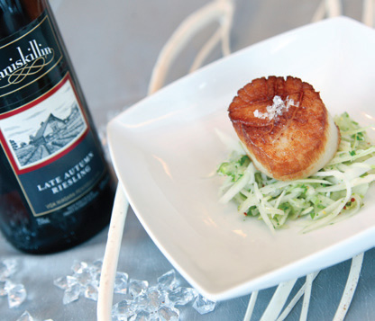 Seared Scallops on Apple & Celery Slaw with Reisling Vinagrette