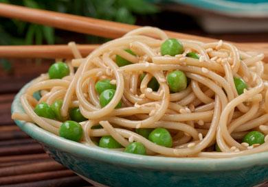 Add peas, soy sauce, and sesame oil, tossing until well mixed.