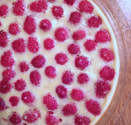 Add raspberries to filling mixture and gently stir to coat. Pour into pie plate, shifting raspberries around with a spoon or spatula to distribute them evenly. (Or, arrange raspberries in pie plate and pour custard over.)