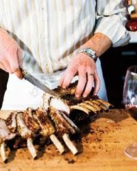 - One 10-rib pork loin roast (5 1/2 pounds)—chine bone removed, fat trimmed to 1/4 inch, rib bones frenched (see Note)