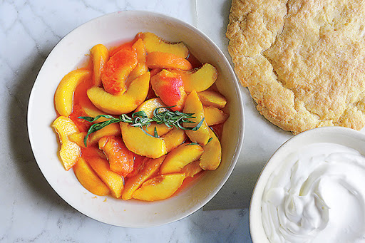 2. Add tarragon and sugar to peaches and toss to combine. Let stand, tossing occasionally, until peaches release their juices and sugar is dissolved, about 1 hour.