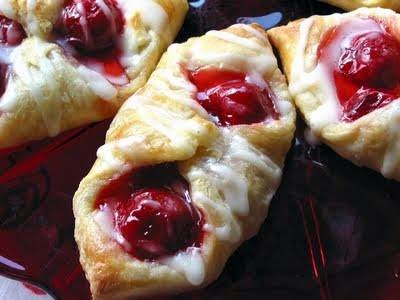 I cut the sheet of pastry into 9 squares. Then spread the cream cheese mixture on a diagonal.