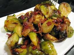 Cook bacon in Dutch oven 10 mins until crisp. Drain on paper towels; reserve drippings in Dutch oven. Crumble bacon. Add broth, sugar & salt to drippings. Stir in sprouts. Cover & cook 6-8 mins until tender. Transfer sprouts to serving bowl; sprinkle with bacon. Serve immediately.