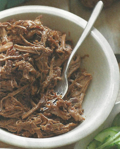 Pork shoulder, a well-marbled cut available at most supermarkets, turns fork-tender after long, slow cooking. This recipe is especially succulent with a spice rub and vinegar.