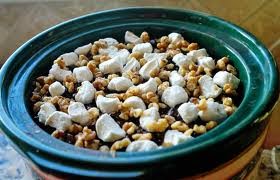 Beat cake mix, next 4 ingredients, 1 1/4 c milk. Pour into lightly greased crockpot. Cook remaining 2 c milk over med heat (3-5 mins) until bubbles Remove from heat. Sprinkle cook&serve pudding over batter. Slowly pour hot milk over pudding. Cover&cook onLOW3 1/2 hrs. Meanwhile, heat pecans in skillet (3-5 mins) until lightly toasted. Turn off crockpot. Sprinkle with pecans, marshmallows,&choc. chips. Let stand 15 mins. Serve