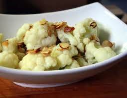 Preheat to 500 deg. Place cauliflower & garlic on large rimmed baking sheet. Combine EVOO, salt, cumin & pepper. Drizzle EVOO over veges; toss to coat. Spread veges in single layer & roast until tender & lightly charred, 25 mins. Let cool slightly; then using your fingers, squeeze roasted garlic out of their skins into bowl; add cauliflower and almonds and toss!