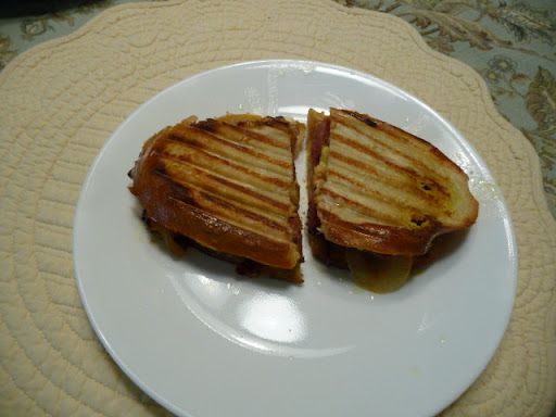 Butter or put olive oil on both slices on the outside (to keep from sticking in the Panini press). Put sandwich in Panini and grill until light brown on the outside.