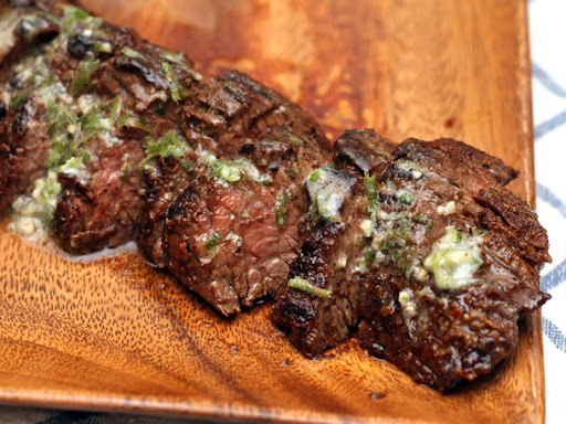 Grilled Chipotle Rubbed Steaks with Lime Butter