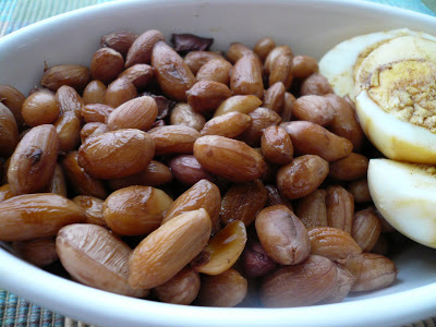 The peanuts will cook faster and softer if you use pressure-cooker for 30 min. I added some hard boil egg to the braised peanuts.