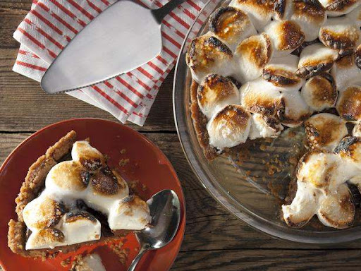 Just before serving, preheat your broiler. Top the pudding pie with the large marshmallows, covering the entire pie surface. Transfer the pie to a baking sheet. Broil the marshmallows 4 inches under the broiler until the tops are golden brown, 2 to 3 minutes. Keep a close eye on this, it goes fast! Alternatively, use a kitchen torch to brown the marshmallow topping. Serve immediately.