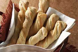 2. Cut the loaf of bread in half lengthwise. Cut each half crosswise in three pieces. Then cut each piece in four 1/2-inch-wide sticks. Brush the breadsticks with the garlic-infused mixture, sprinkle with parsley, then place on a baking sheet. Bake for 18 to 20 minutes, until edges are golden brown.