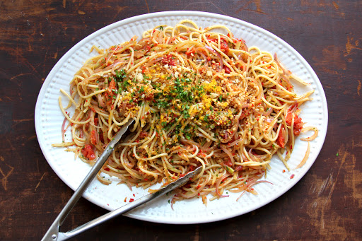 Spaghetti with Oven-Roasted Tomatoes and Caramelized Fennel