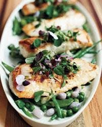 Halibut with Mixed Beans and Lemon-Butter Sauce