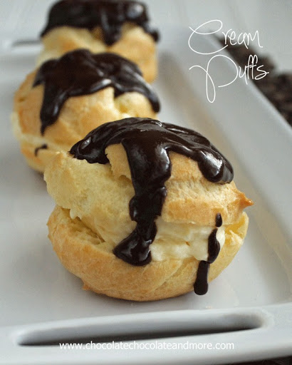 Prepare your Chocolate ganache. Place chocolate in a medium bowl. In a small saucepan, heat cream over medium heat. At the first sign of boiling, remove from heat and pour hot cream over chocolate. Whisk till all the chocolate is melted and smooth. Spoon over prepared cream puffs.