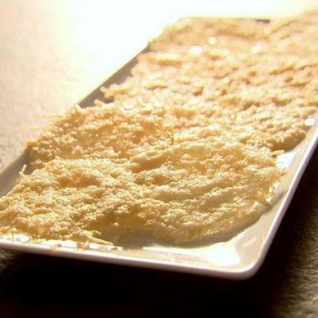 Grate 2 ounces of the Parmesan using the side of the box grater that finely grinds the cheese and then grate 2 ounces of the Parmesan using the side of the box grater that makes long shreds of cheese, and then mix them together. Drop rounded tablespoons of the grated Parmesan on the parchment paper to make neat mounds. Bake in the oven for 6 minutes until golden.