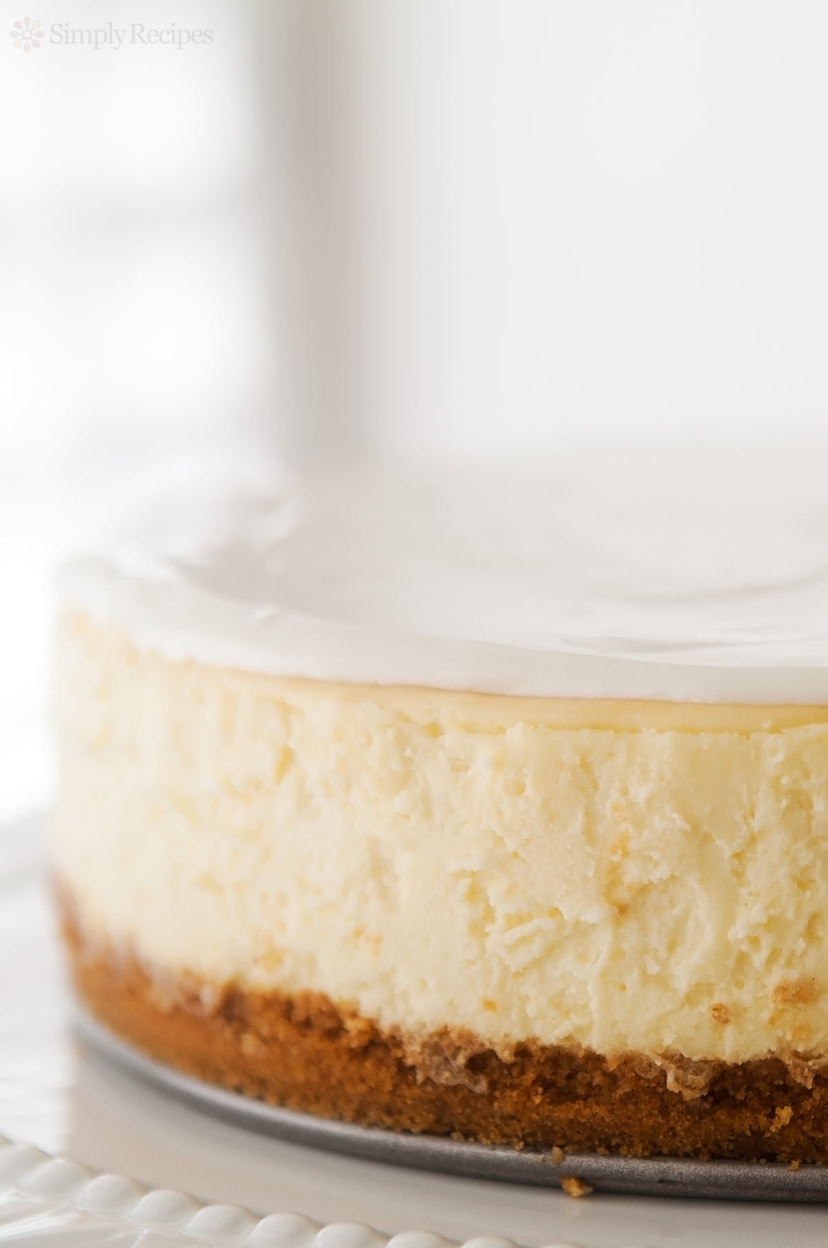 Note that this recipe produces enough sour cream topping for a thick topping and some extra to spoon over individual pieces of cheesecake, if desired. If you would like a thinner layer of topping and no extra, reduce the sour cream topping ingredients in half.