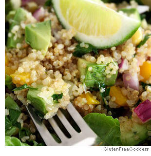 1. Cook the quinoa per package instructions. Fluff the cooked quinoa with a fork. Scoop the quinoa into a bowl.