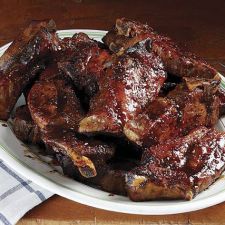 Put the ribs in a dutch oven or covered heavy pot that will accommodate them, pour the sauce over the ribs and cook over low heat for about 45 minutes or until the ribs are tender. (You can do this a day ahead and refrigerate the ribs if you are having a party).