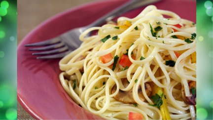 - 1/2 lb. spaghetti, linguine, farfel, or other pasta