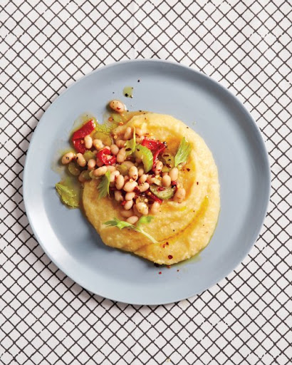 Polenta with White-Bean and Roasted-Pepper Ragout