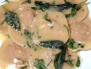 Pumpkin Lune with Butter and Sage: Some recipes for this may have the amaretti in the filling, but its a nice twist to grate it over the top instead.