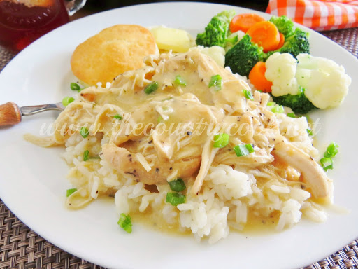 Once cooked, break chicken up into chunks using a fork. Stir in sour cream (if using). Note: I think the sour cream adds a great creaminess to this so I definitely recommend adding it in! Then serve over rice, mashed potatoes or noodles