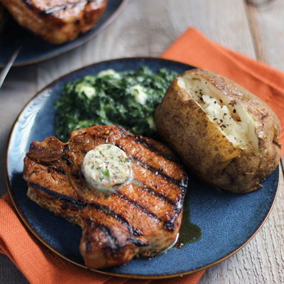 Dry-Rubbed Porterhouse Pork Chops with Steakhouse Butter