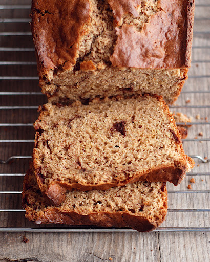 4) Bake for 45 minutes, or until a toothpick inserted in the center comes out clean (I had to bake mine for an additional 10 minutes or so). Let cool in pan on a rack for 10 minutes. Turn bread out onto the rack and allow to cool. Serve with butter and a tall glass of cold milk. Makes one large loaf
