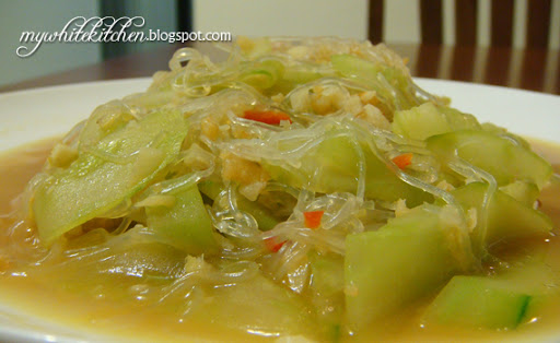 1. Saute chopped garlic and dried shrimp until aromatic.