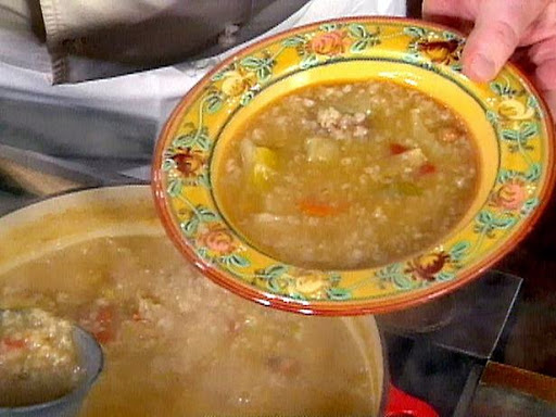 Add the chicken stock, the cabbage and tomatoes, and stir to combine.bring to a boil and reduce to a simmer. Let simmer gently until the rice is cooked and the vegetables tender, about 45 minutes to 1 1/2 hours for a thicker texture. Season, to taste, with salt and pepper. Serve with Parmigiano-Reggiano, for grating.