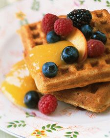Oat and Whole-Wheat Waffles with Mango Sauce