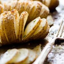 Remove crispy skin. It will pull right off in big pieces. Cut them into smaller pieces—kitchen shears work well for this—and pile them in center of the platter. Carve meat parallel to bones all way down to bone. (It will get trickier to carve neat slices as you get near bone; don’t let that bother you.)