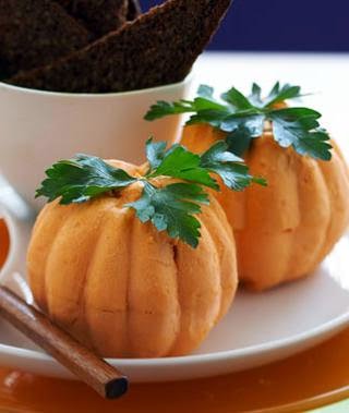 4. Press matching halves of pumpkins together to attach. Garnish tops of pumpkins with parsley sprigs. Serve with accompaniments