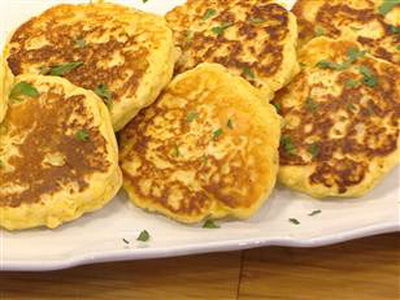 In batches, drop the batter by the 1/4 cup or large spoonful into the oil. Brown corn cakes on both sides, 4 to 5 minutes per batch. Garnish with chopped parsley and serve.
