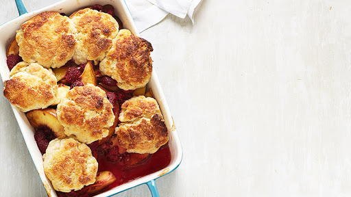 Place dish on center rack. Bake for 50 minutes, or until biscuits are golden and juices are bubbling. Cool cobbler on a wire rack at least 15 minutes, and serve warm with vanilla ice cream.