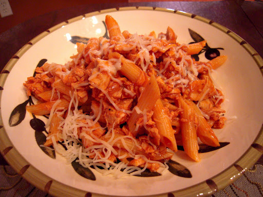 This is the second recipe I've tried from Smoky Mountain Cafe. I have never thought of trying buffalo chicken as a pasta dish. This was a nice change for dinner. It is spicy - I used 3 Tbsp of hot sauce. I cooked my chicken the night before in my Pampered Chef Deep Covered Baker (only takes 8 minutes). This meal came together in less than 20 minutes. Great weeknight meal!