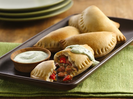 Looking for a southwestern appetizer? These flavorful bean-filled pastries with cilantro cream sauce are sure to impress!