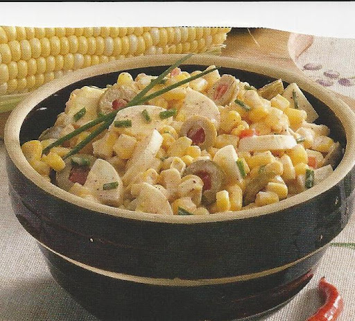 In a bowl, combine the corn, eggs and olives. In a small bowl, combine the mayonnaise and seasonings. Stir into corn mixture and mix well. Cover and refrigerate for 2 hours or until chilled.
