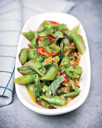 Sugar Snap Peas with Soffrito, Hot Pepper and Mint