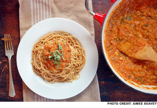 If you prefer a thinner sauce, use a potato masher to further crush the tomatoes. If your sauce includes mushrooms or firm veggies, you may want to transfer portions of it to the blender to puree, or use an immersion blender directly into the sauce, to achieve your desired "chunkiness."