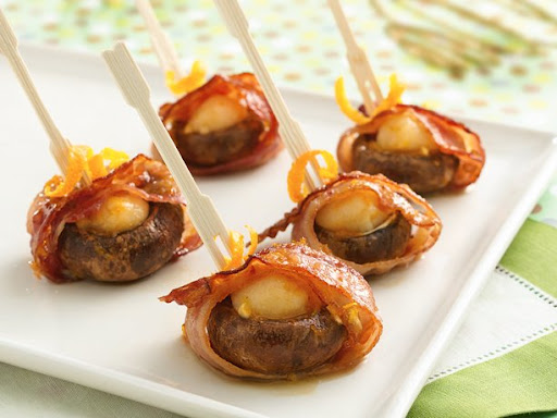 Smoky bacon and earthy mushrooms complement tender scallops in an appetizer that's ready in 25 minutes.