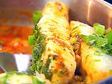 Arrange a pile of steamed spinach in the bottom of 4 soup plates. Top with the fish fillets. Stir the cilantro, scallions, and lime juice into the sauce and season, to taste, with salt and pepper. Ladle the sauce over the fish and serve with rice.