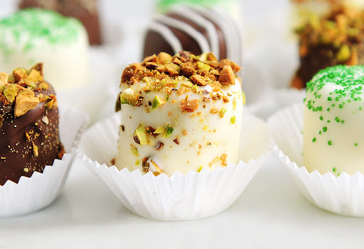 Before chocolate hardens, sprinkle with favorite toppings.