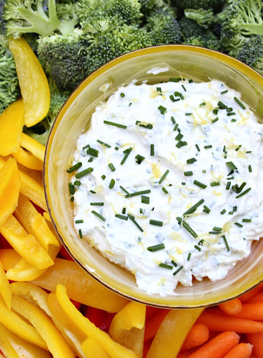2. When ready to serve, sprinkle with lemon zest and/or fresh chives. Serve with crackers, pita chips and/or vegetables.