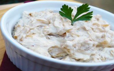 Mix onion, sour cream, mayonnaise, Worcestershire sauce and pepper into mashed garlic. Spoon dip back into clean
